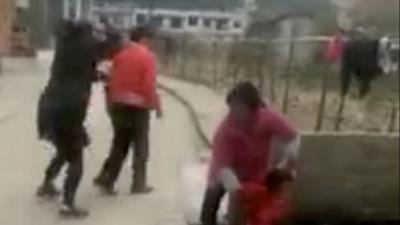 سيدة تلقي طفلها في قناة الصرف الصحي